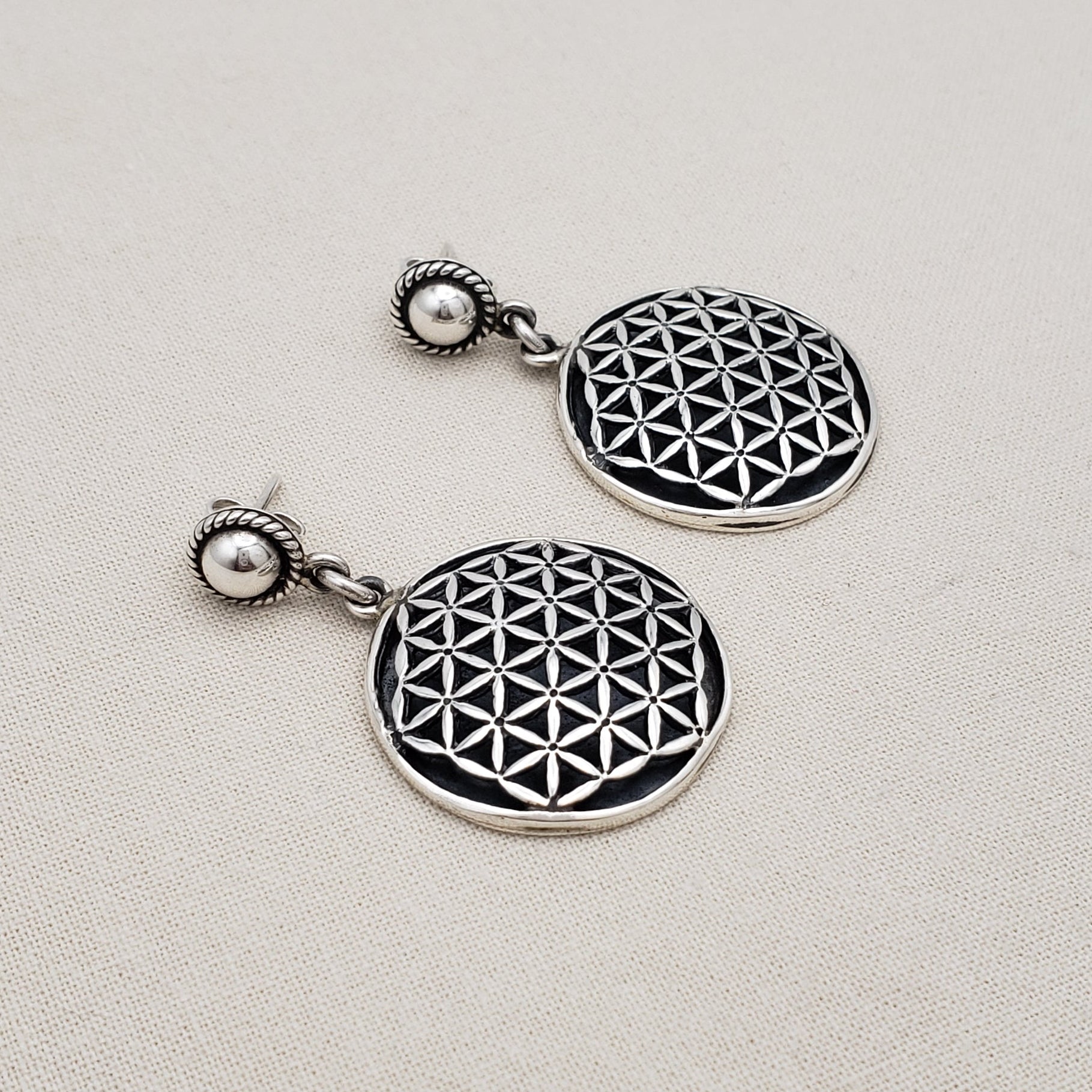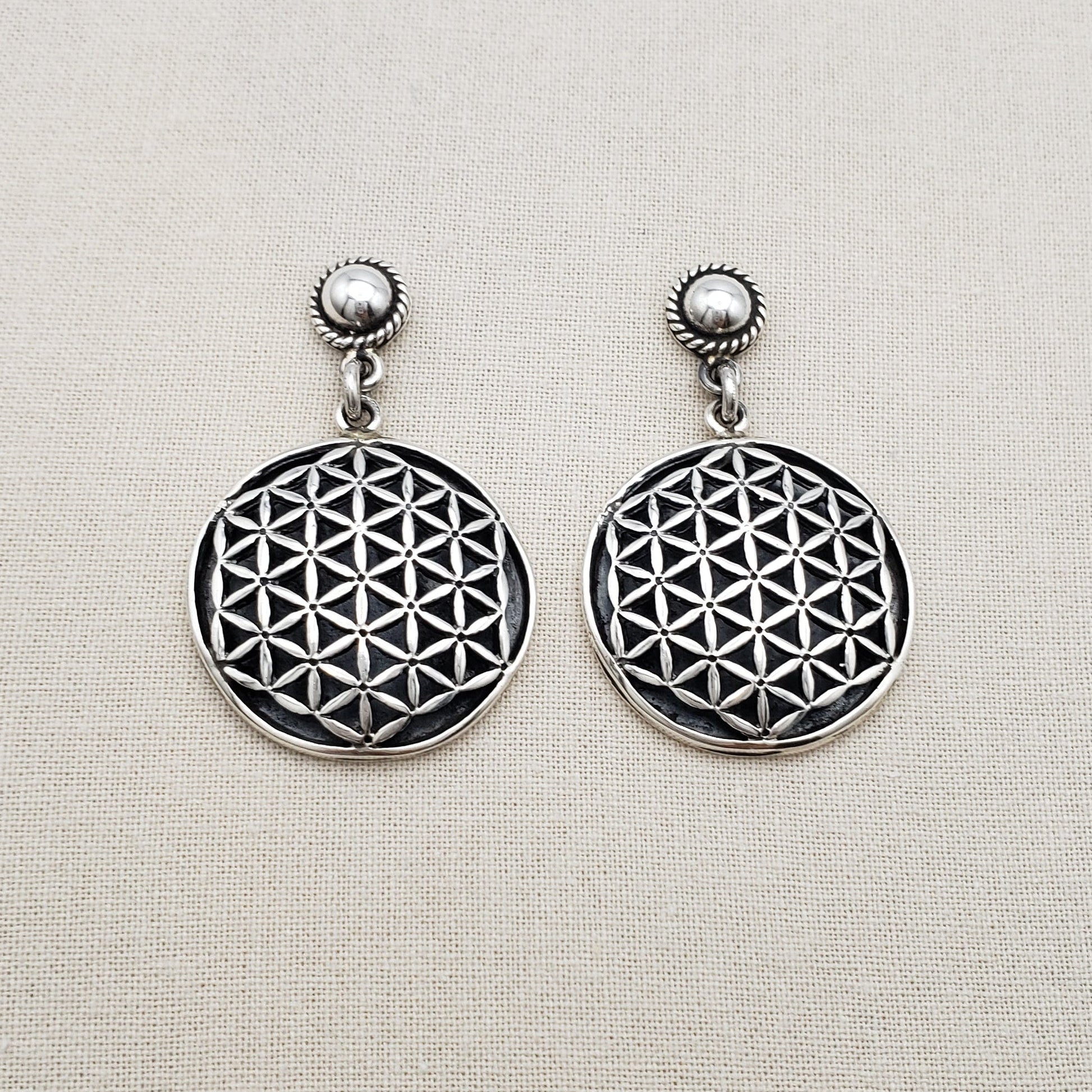 Discover the spiritual elegance of these Earrings, expertly handcrafted from 925 sterling silver by Peruvian artisans. Featuring the sacred geometric Andes Mandala pattern, these dangling earrings blend ancient symbolism with exquisite craftsmanship. The design includes a polished bead accent and twisted detailing, offering a harmonious balance of tradition and modern style. Lightweight and versatile, they’re perfect for daily wear or as a meaningful gift