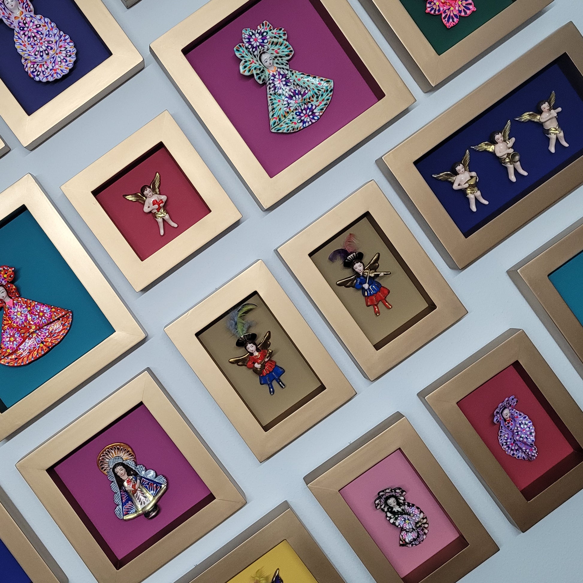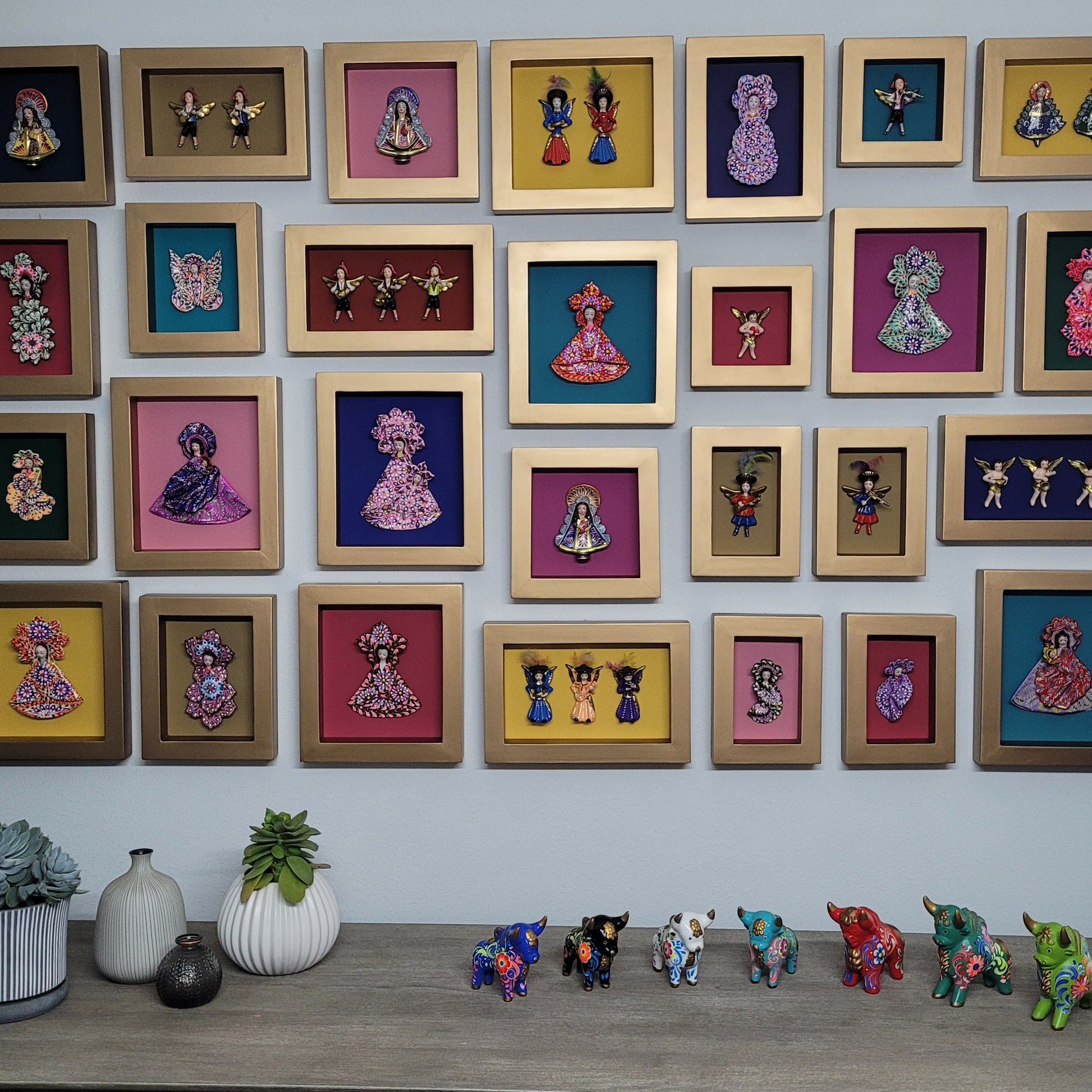 Transform your space with this exquisite handcrafted frame featuring a hand-painted Virgen de la Candelaria, crafted from rice paste by skilled artisans from Cusco and expertly framed by Amelia Fine Craft. The vibrant colors and intricate details of this unique piece capture the rich essence of Peruvian artisanal heritage. Perfect as a standalone masterpiece, this stunning artwork can also be combined with other frames to create a captivating set, adding even more cultural elegance to your home.