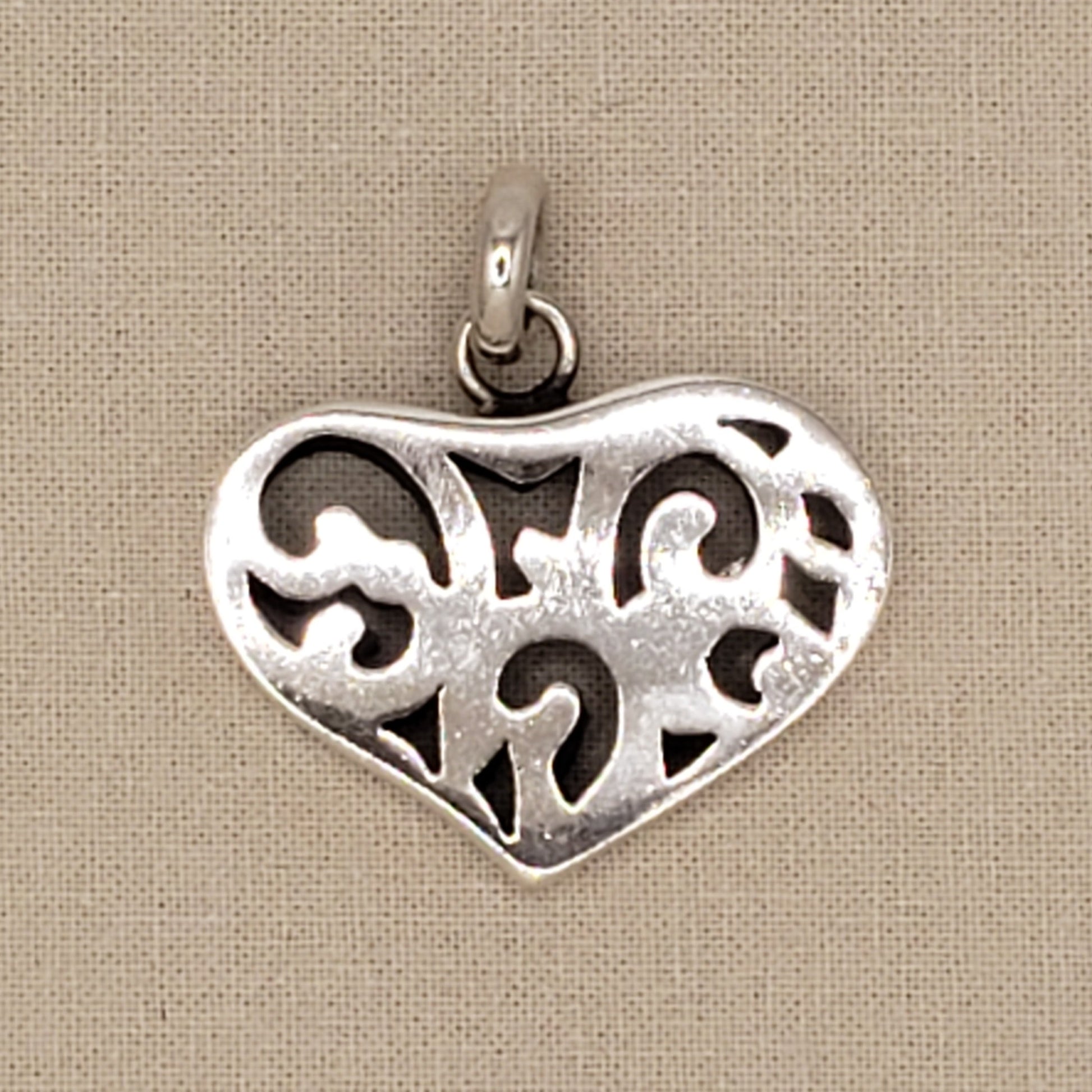 Discover a piece of authentic Peruvian artistry with this stunning handcrafted heart pendant. Meticulously crafted from high-purity 950 Peruvian silver, this pendant features an intricate black filigree pattern that beautifully contrasts with the polished silver. This elegant design seamlessly blends traditional craftsmanship with modern sophistication, making it a versatile and timeless accessory for any collection